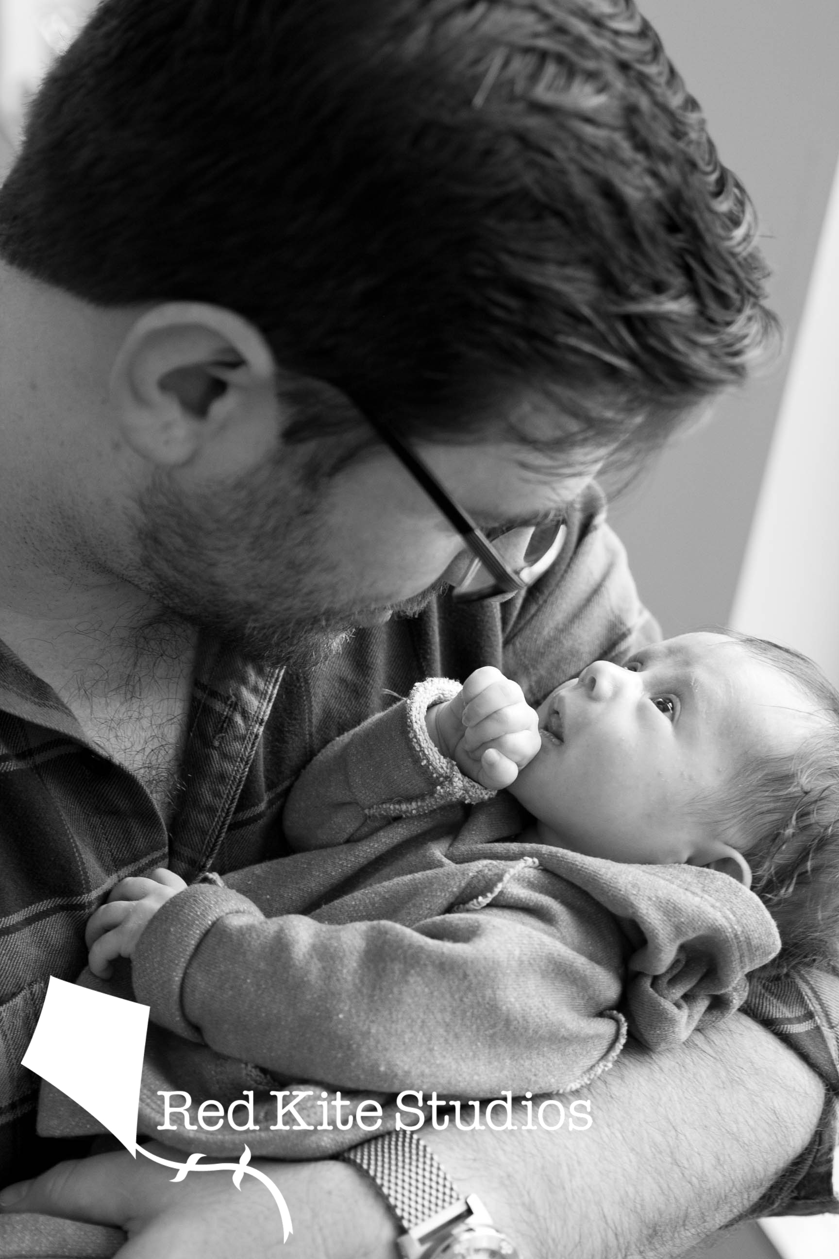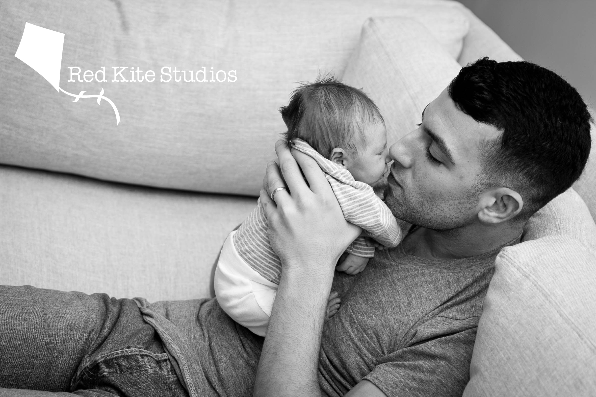 Emily and Sean and their baby boy enjoyed a morning of photos in their impeccable Silver Spring home. I mean, sparkling impeccable. It’s like they had a newborn who couldn’t move around destroying half the house or something yet. For now, he lay around looking ornamentally cute on the floor and on their couch. Adorned by two loyal dogs, the family couldn’t have had a more picture-perfect holiday card. In the last shot, he was already napping soundly in his father’s arms.