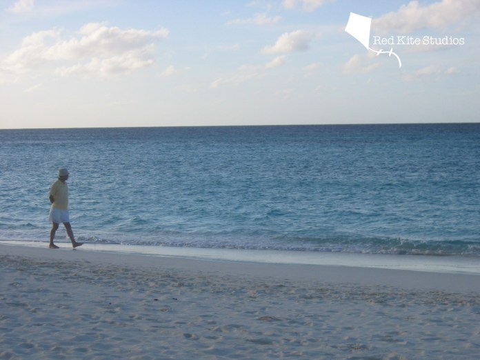 Walking along the ocean at dusk by himself in Anguilla