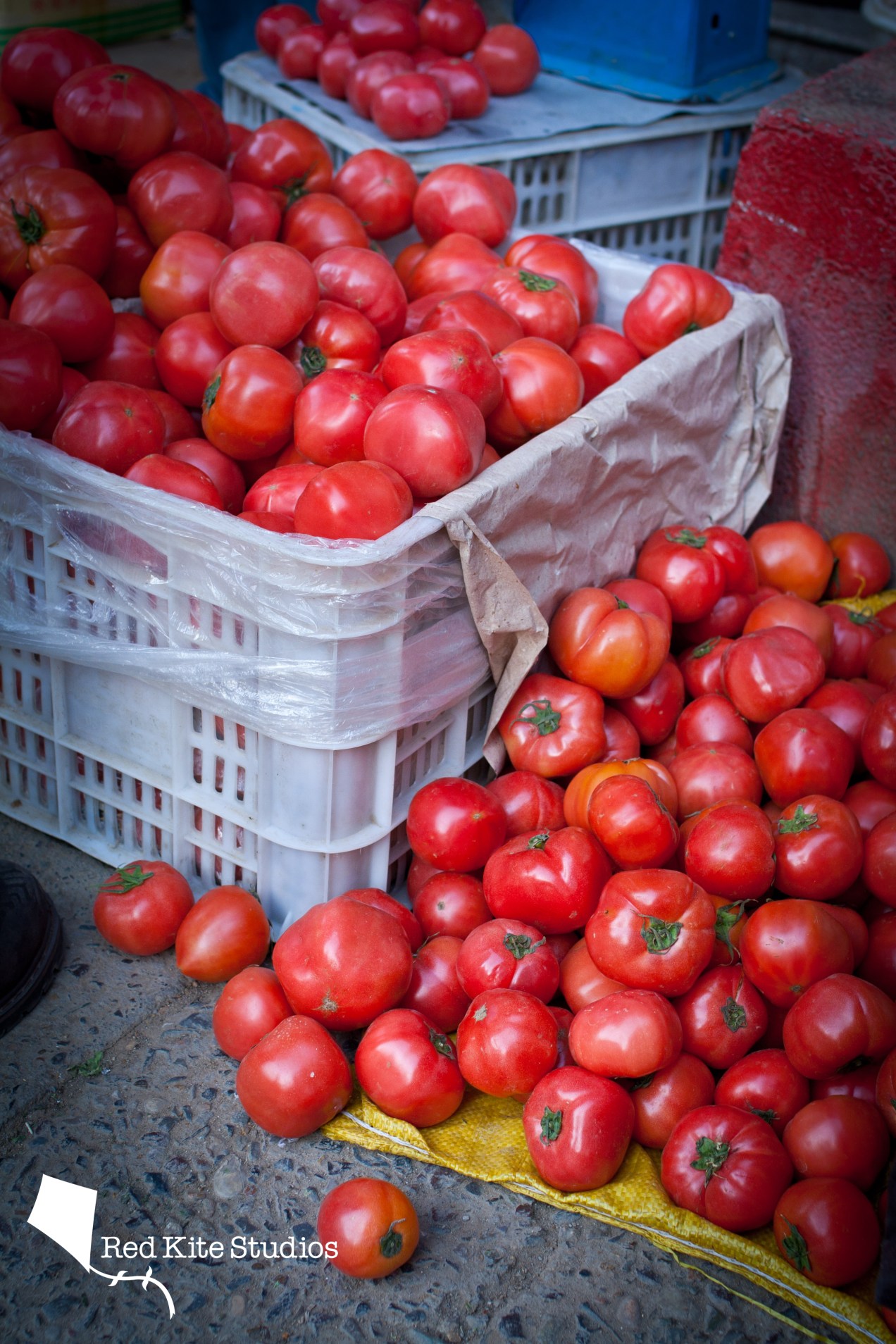 Tomatoes at early morning street market near Fuli cheng