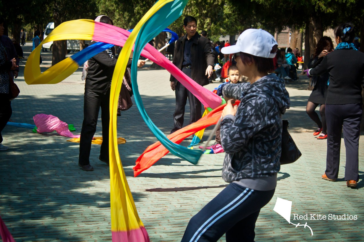 Lady dancing with ribbon at Tian Tan park