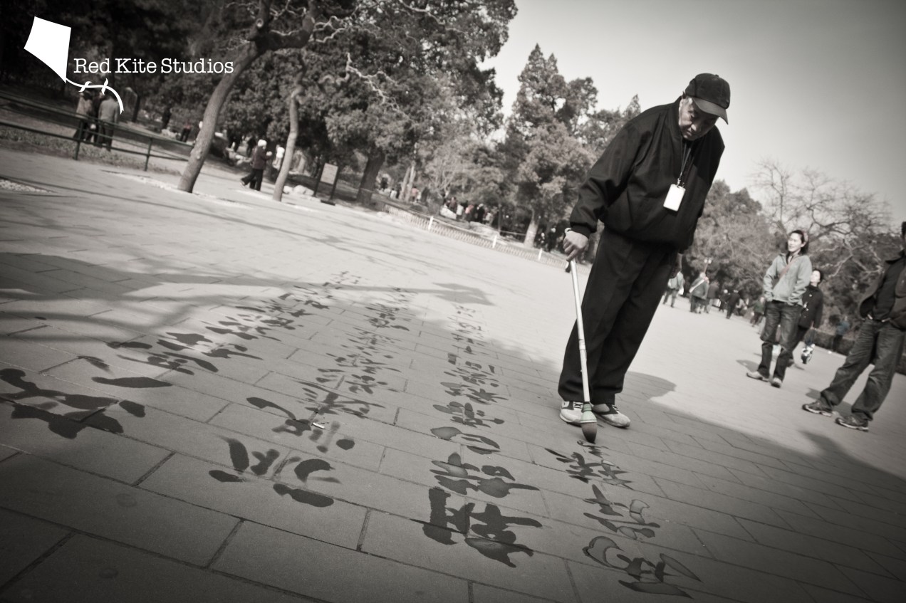 Man writing with water, Jing Shan park